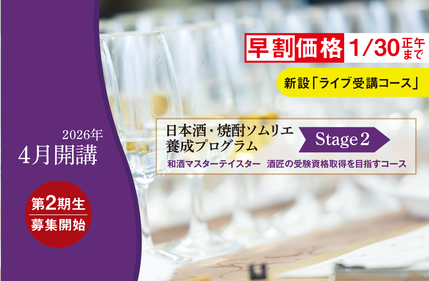「日本酒・焼酎ソムリエ養成プログラム Stage 2」は、唎酒師、焼酎唎酒師の上位資格にあたる「酒匠」「和酒マスターテイスター」の受験資格取得を目指していただくコースです(2025年に開設)。