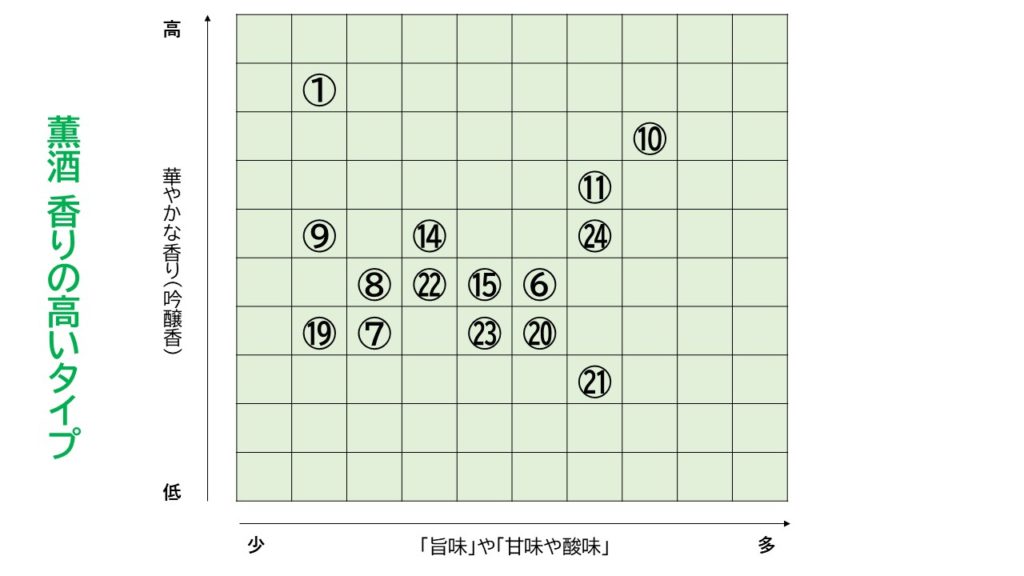 - 麹・原料の違い(特に芋の品種)による香味差